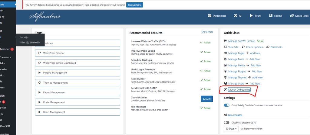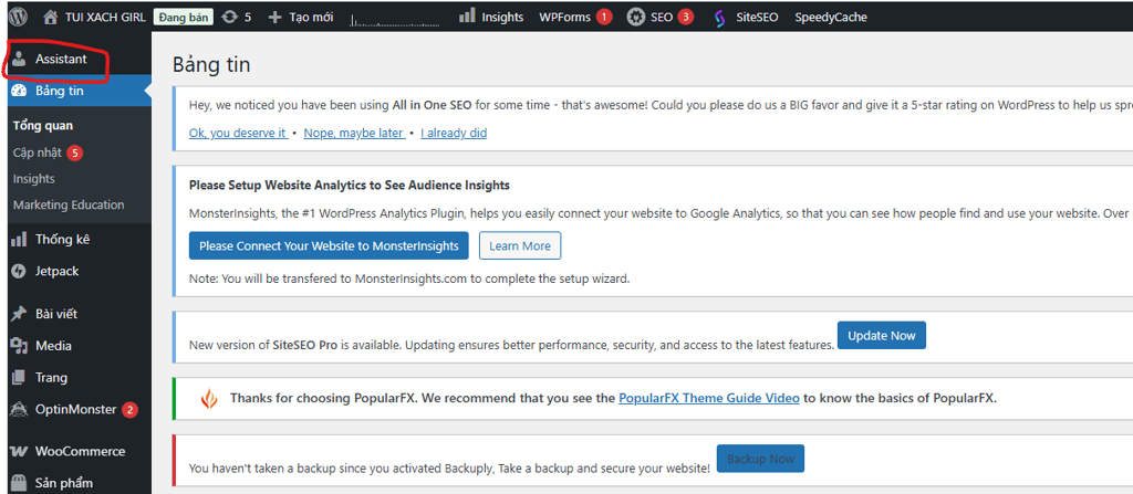 Vào trang quản trị wordpress gọi Trợ lý AI.
