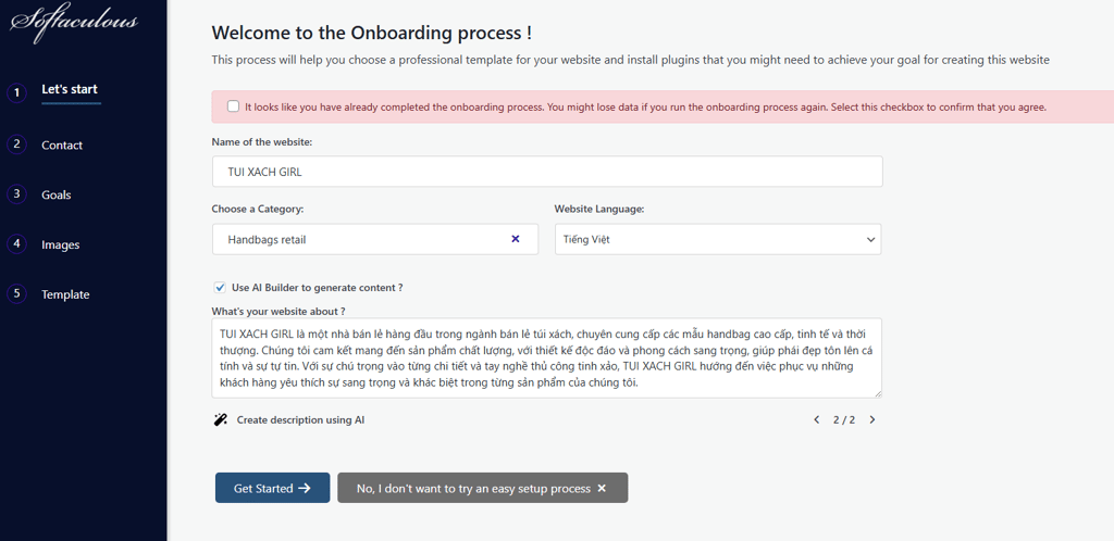 Sau đó nhấn Get Started và điền thông tin của bạn ở những bước tiếp theo -->> chọn ít nhất 10 hình ảnh hoặc bạn tự tải hình ảnh của mình lên